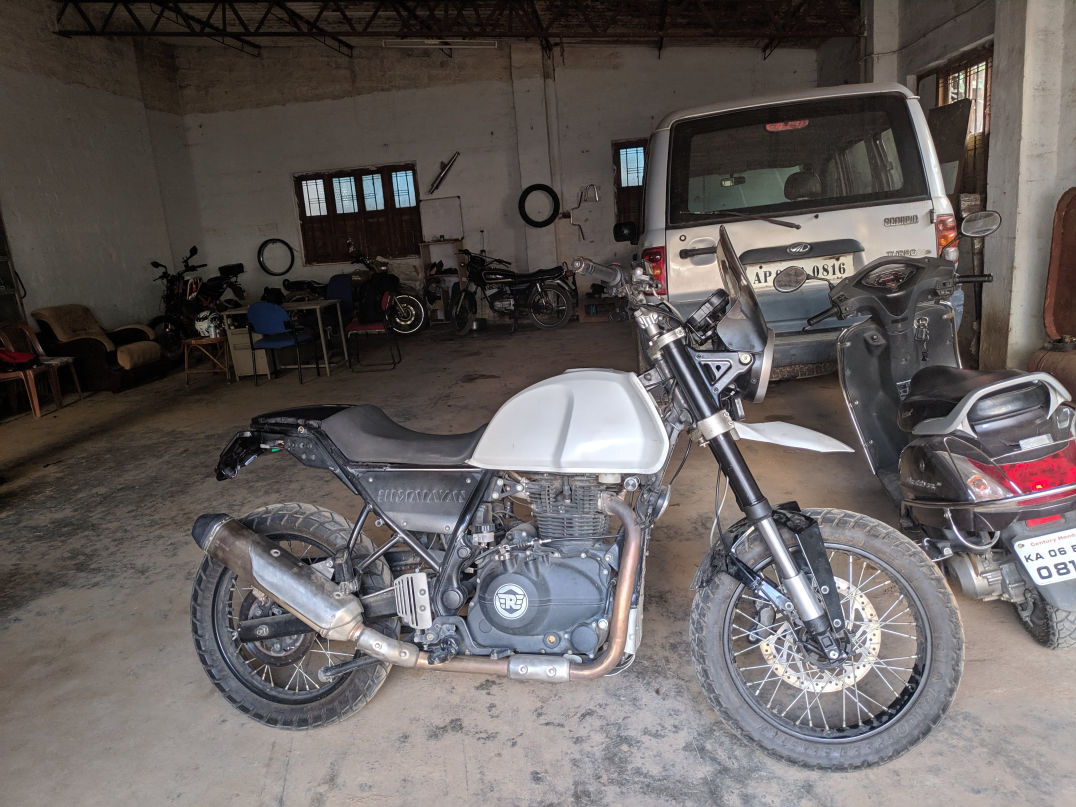 Himalayan front assembly completely redesigned with KTM Fork. Chassis modification to suit adventure riding. Read more..
